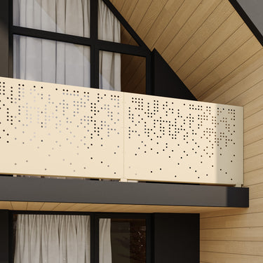 Individuelle Aluminiumgeländer mit lasergeschnittenen Aluminiumpaneelen.