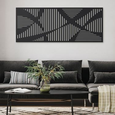 Das Metallwandbild DS-3 beeindruckt mit einem abstrakten, geometrischen Muster, das klare Linien und raffinierte Strukturen in perfekter Harmonie vereint. Dieses zeitlose Design macht jede Wand zum Blickfang und passt hervorragend zu modernen und minimalistischen Einrichtungsstilen.