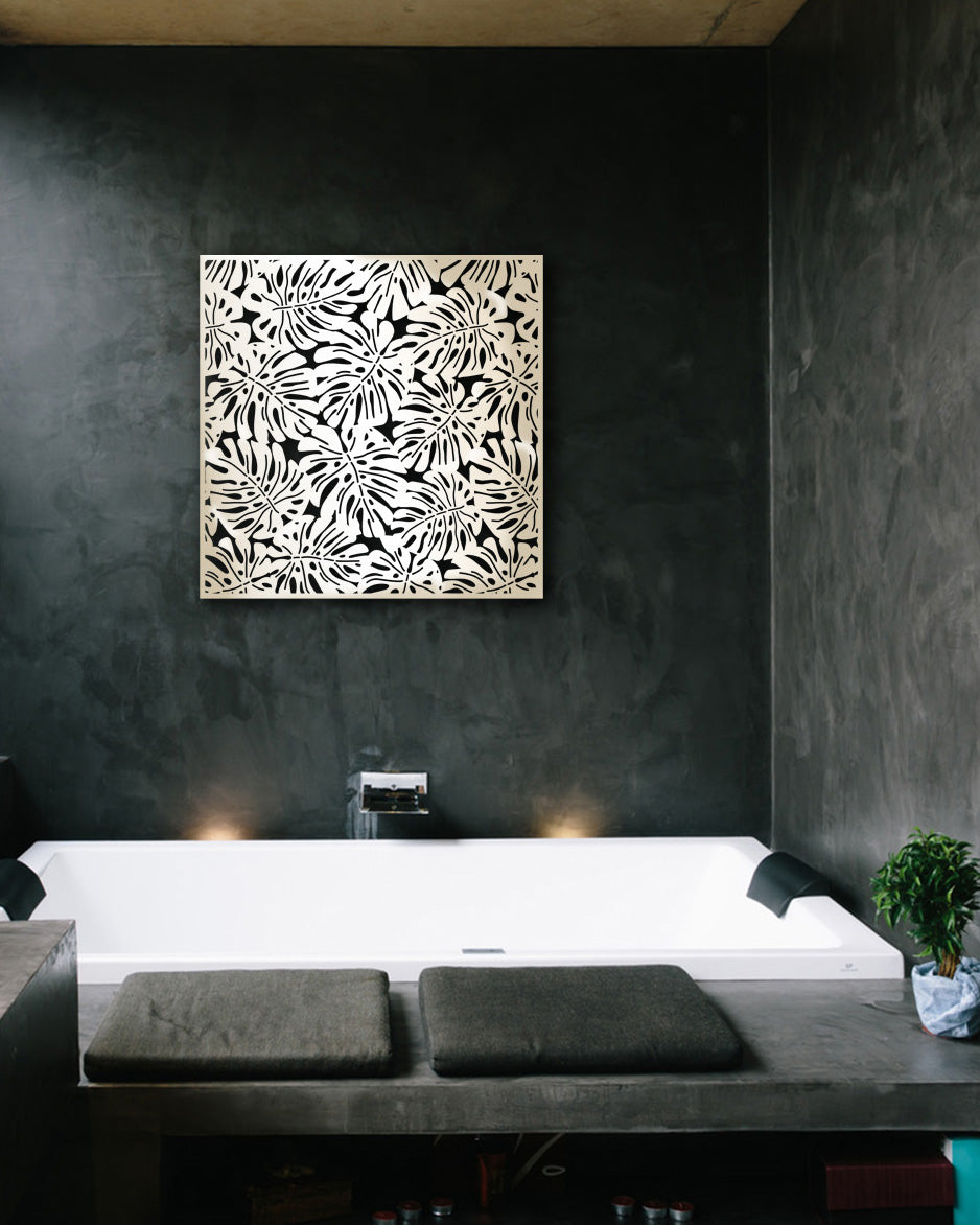 Die pulverbeschichtete Oberfläche ist wetterfest, UV-beständig und in verschiedenen Farben erhältlich. Ob als Wanddekoration im Wohnbereich, auf der Terrasse oder im Eingangsbereich – DS-98 bringt tropisches Flair in stilvollem Metall-Design.