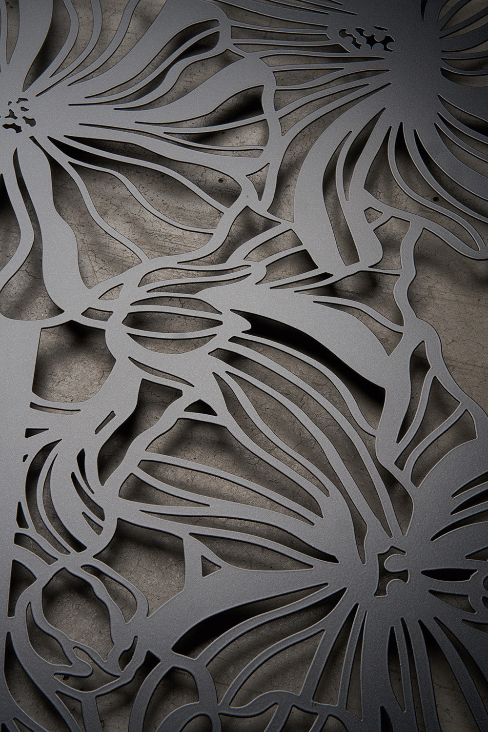 Das Metallwandbild MALVEN fasziniert mit seinen zarten, lasergeschnittenen Blütenmotiven, die eine harmonische Verbindung von Natur und modernem Design schaffen. Die filigranen Konturen der Malvenblüten bringen Leichtigkeit und einen Hauch von Romantik in jeden Raum – perfekt für Wohnbereiche, Büros oder repräsentative Empfangszonen.