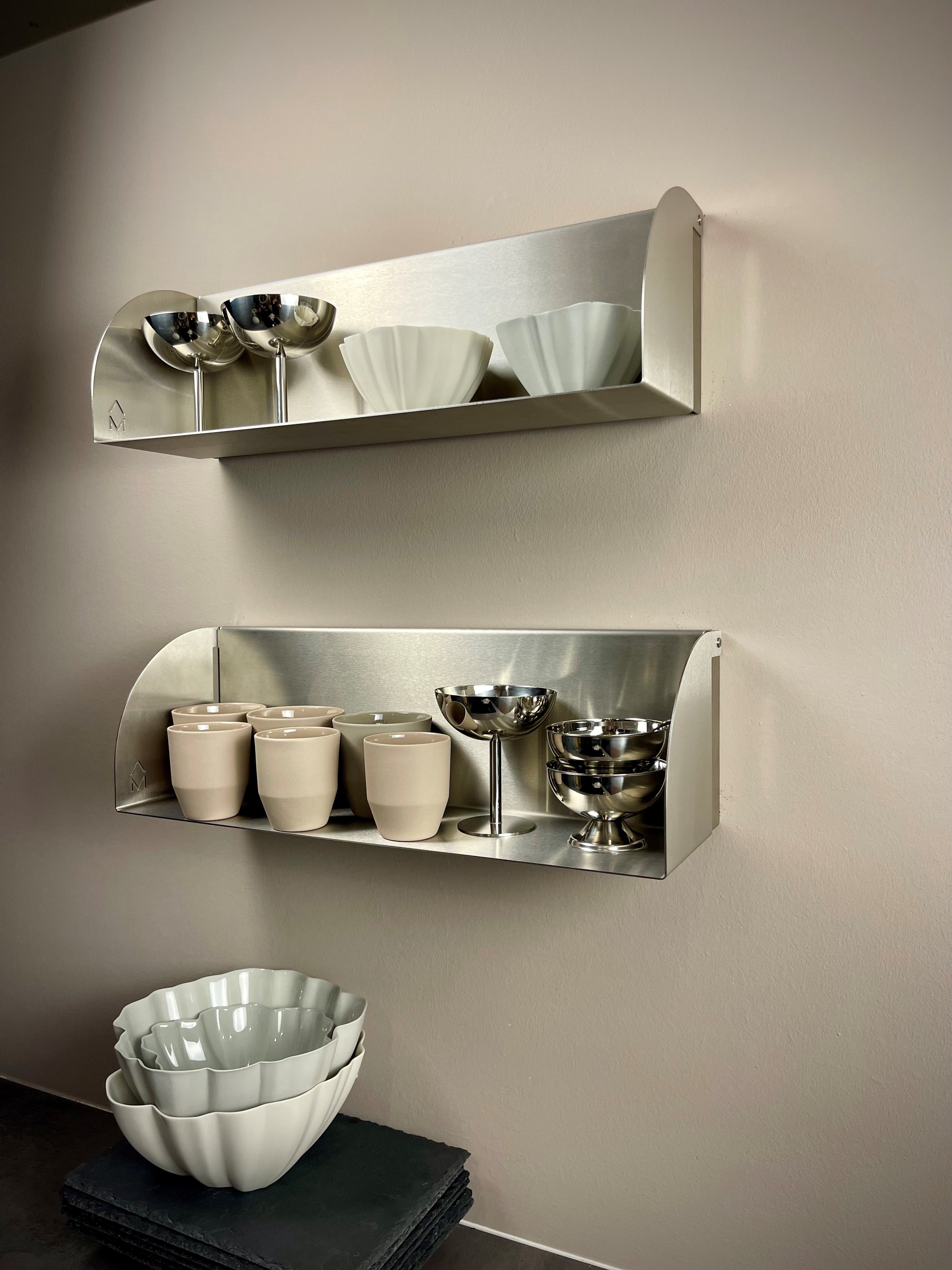 Unsere Wandregale aus gebürstetem Edelstahl verbinden minimalistisches Design mit maximaler Funktionalität – perfekt für moderne Interior-Gestaltung, exklusive Hotelzimmer oder stilvolle Gastronomieeinrichtungen.