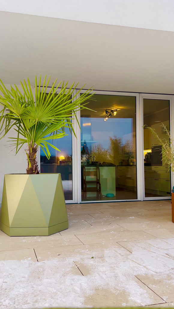 Mit seiner markanten, klaren Linienführung und der hochwertigen Verarbeitung aus pulverbeschichtetem Edelstahl ist HEXAGON mehr als ein Pflanzgefäß – er ist ein architektonisches Statement. Ob auf der Terrasse, im Garten oder im repräsentativen Innenbereich: Das moderne Design fügt sich harmonisch ein und setzt gleichzeitig einen starken Akzent.