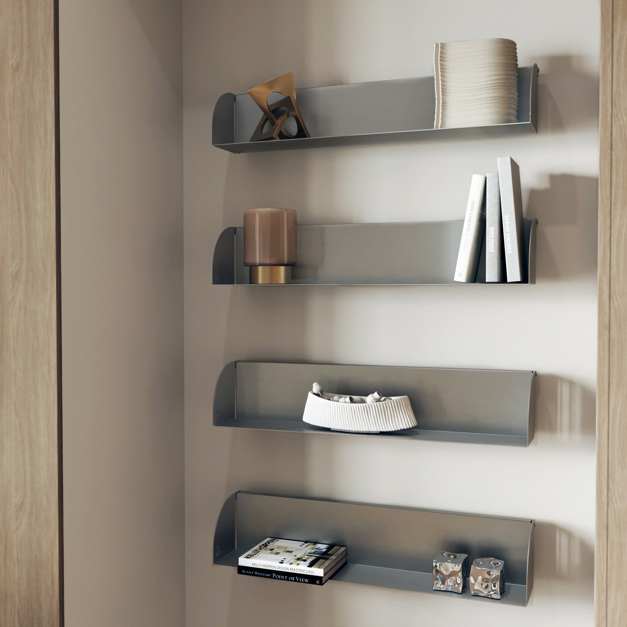 Dieses Designregal aus hochwertigem Aluminium bietet eine 13 cm tiefe Ablagefläche. Die Regalbreite ist variabel und in folgenden Größen erhältlich: 50 cm, 60 cm, 80 cm oder 90 cm. Kombinieren Sie Regale in unterschiedlichen Breiten und Farben, um eine individuelle Wandgestaltung zu schaffen, Platz optimal zu nutzen oder für dekorative Zwecke und Warenpräsentationen.
