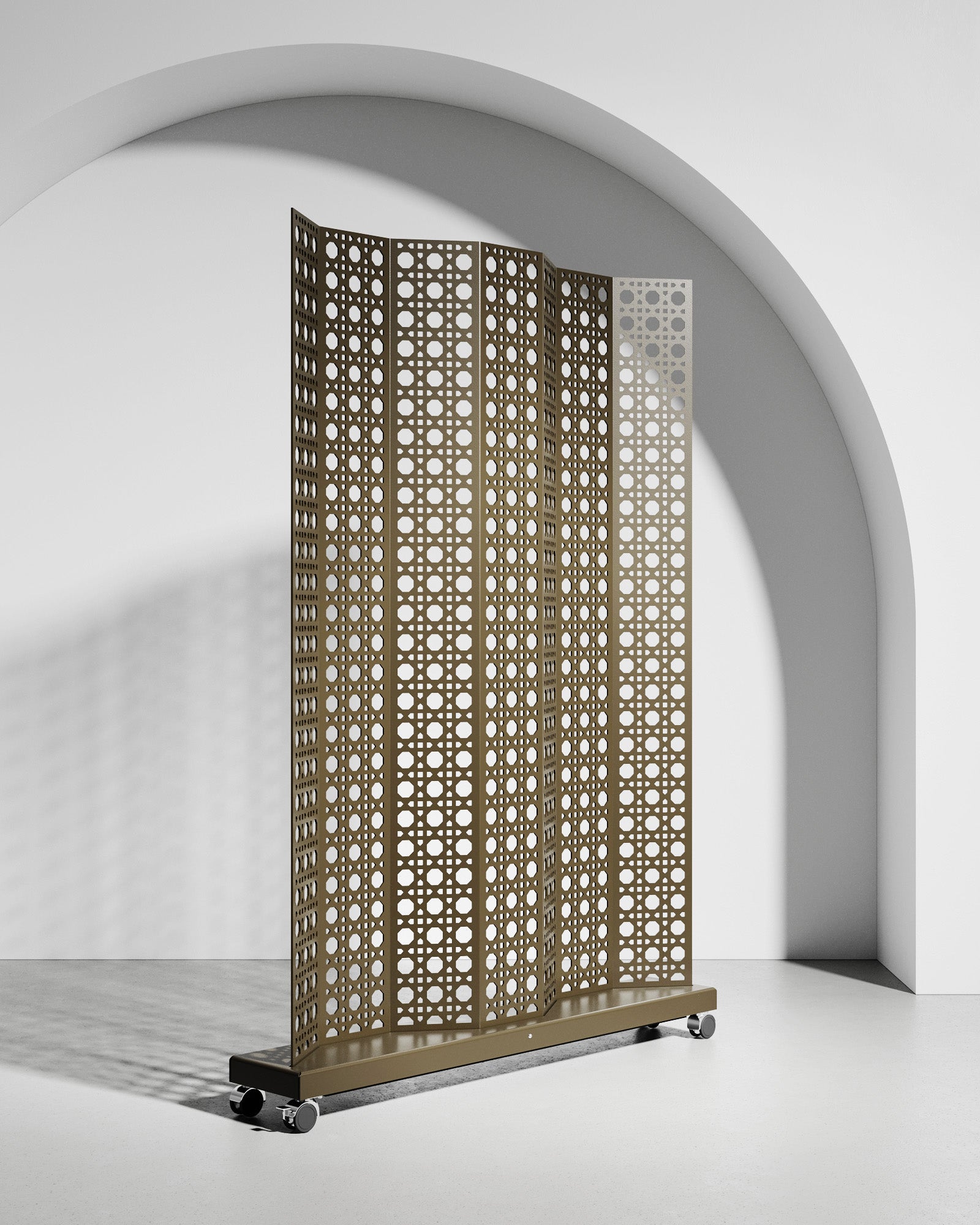 DIVINO MOBILE is much more than a functional room divider - it is a design statement that combines elegance and versatility at the highest level. Made from high-quality aluminum and refined with precise laser-cut patterns, this mobile room divider redefines the standard for sophisticated room concepts.
