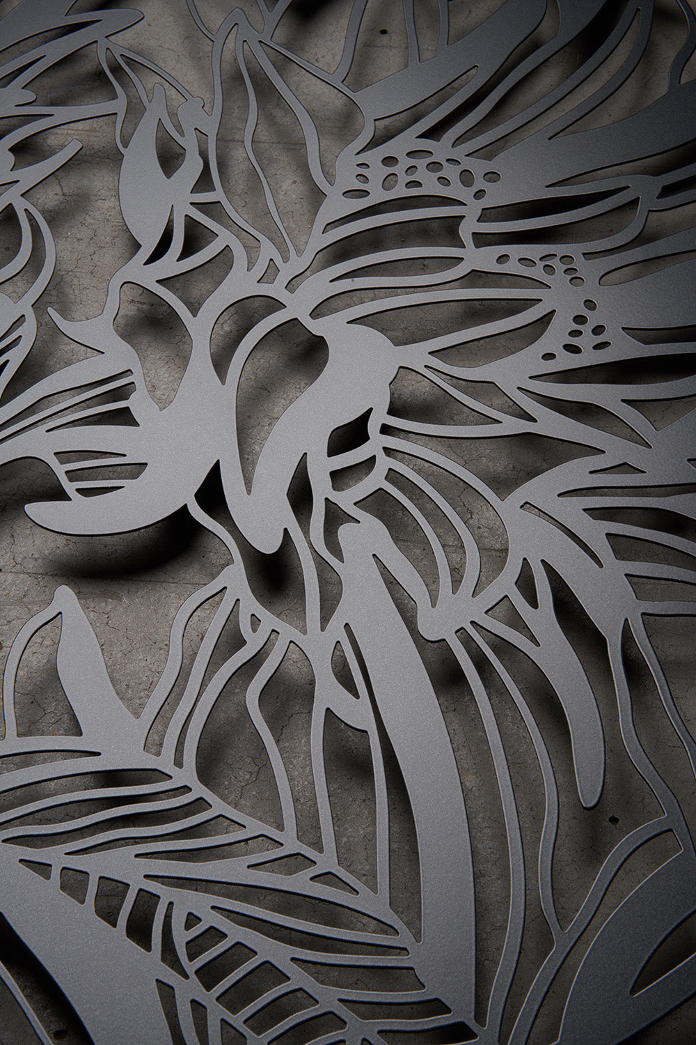 For additional contrast and an impressive depth effect, the mural can be complemented with a silver anodized powder-coated background. This detail highlights the motif and gives the design an extraordinary elegance.